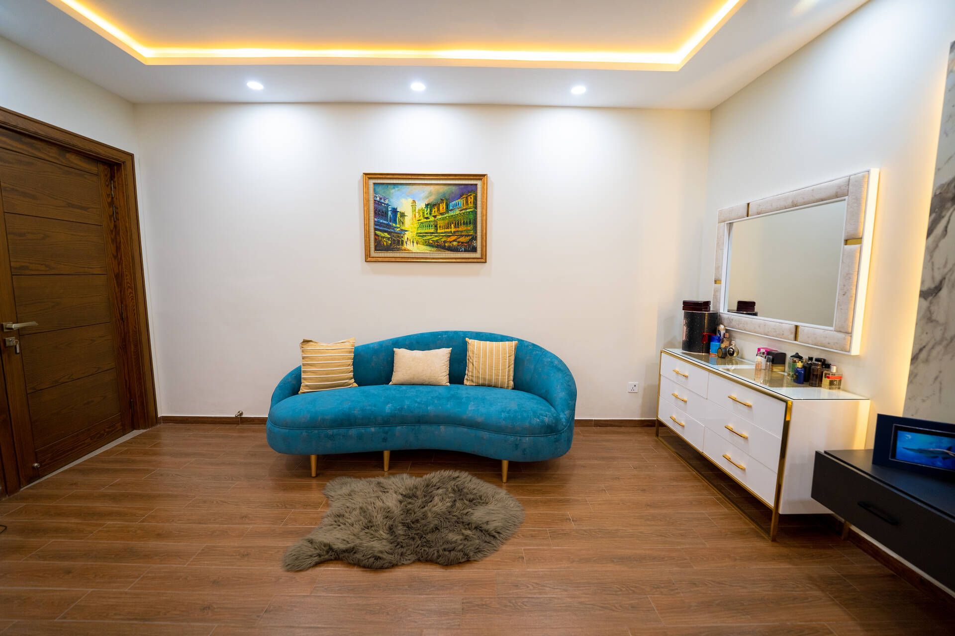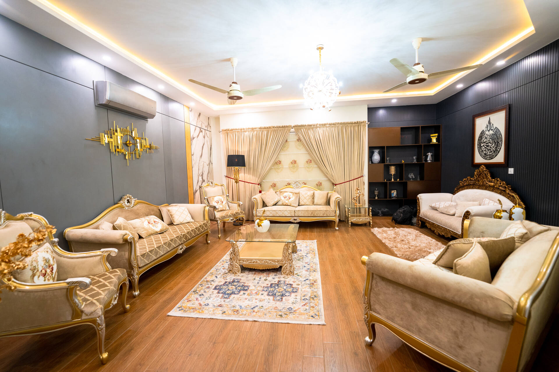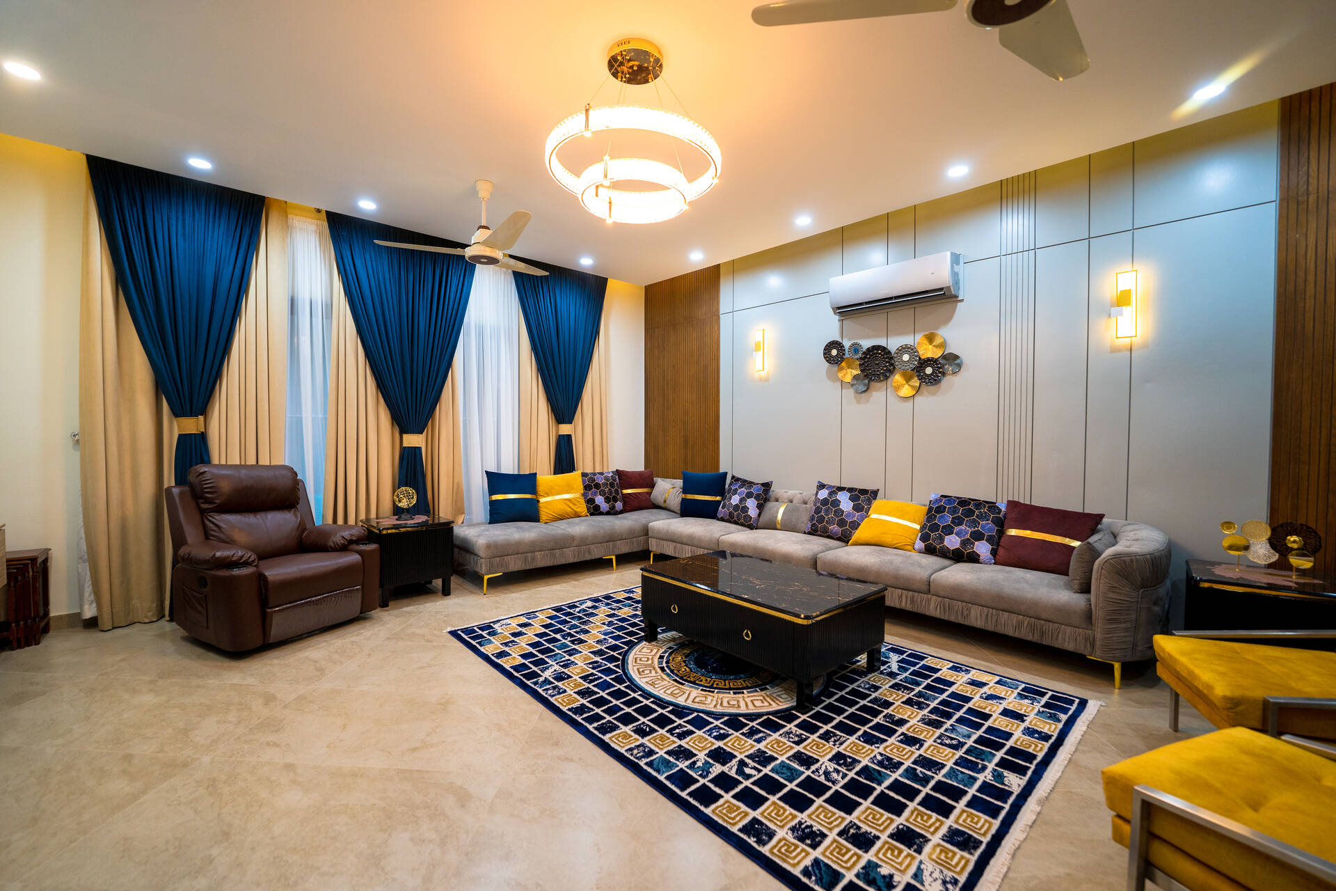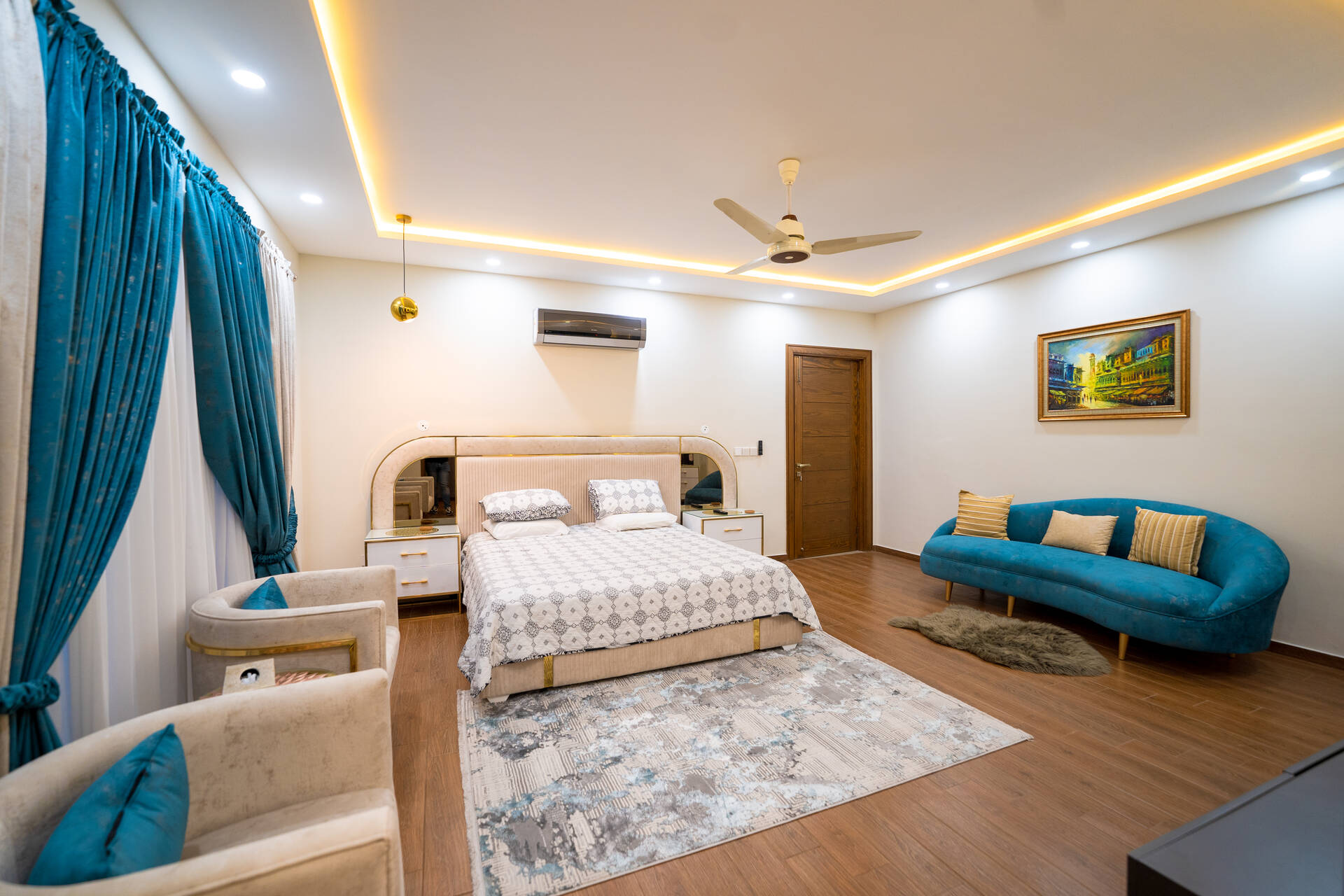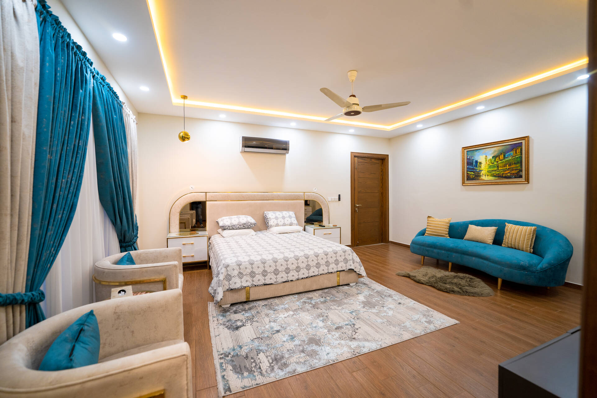 ARC 335 is a luxurious 1.5 Kanal residence designed and constructed by Blue Arc, offering 7500 sqft of premium living space. It includes 5 bedrooms, a lounge, dining area, partial basement, greasy kitchen, and a 2-car porch.