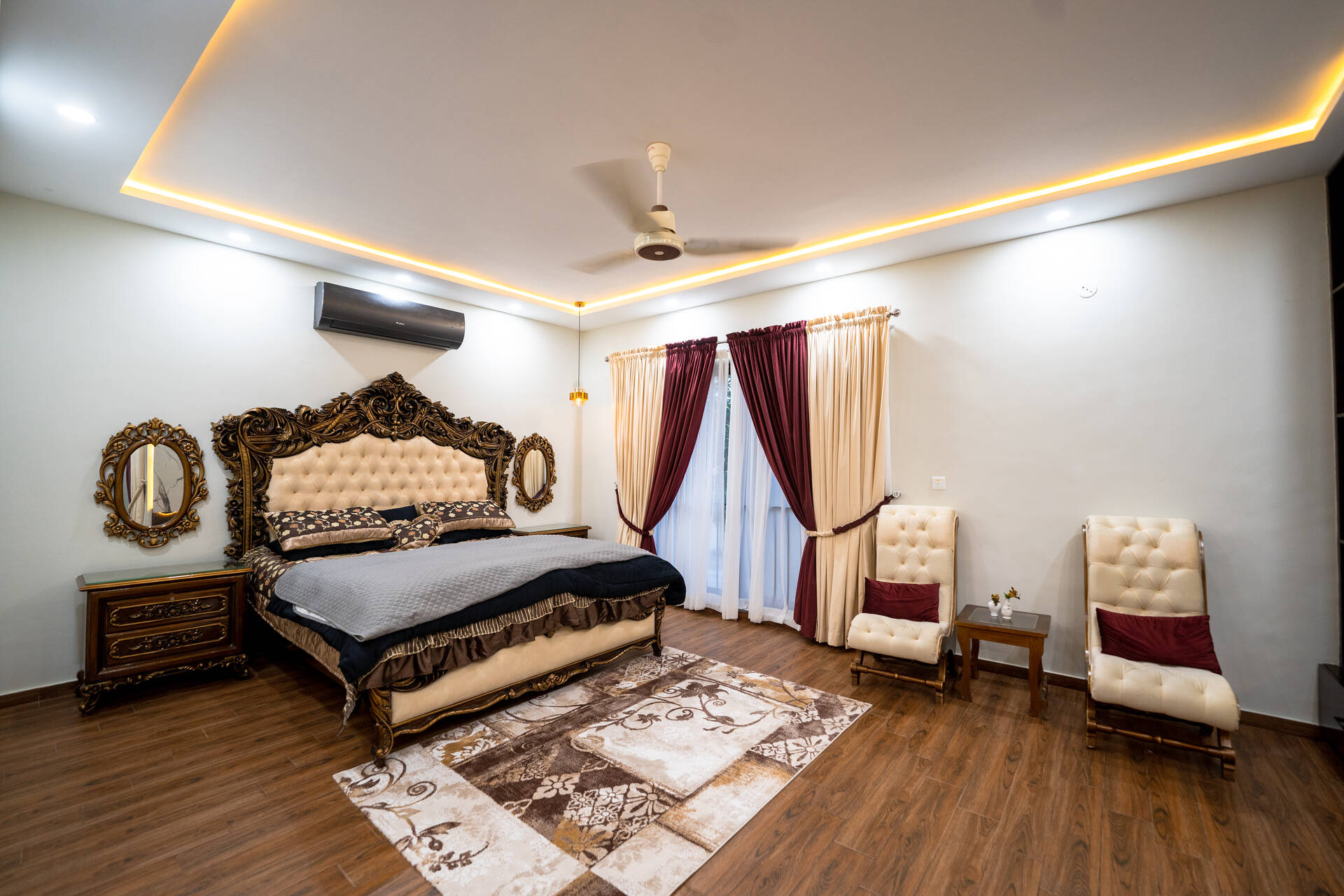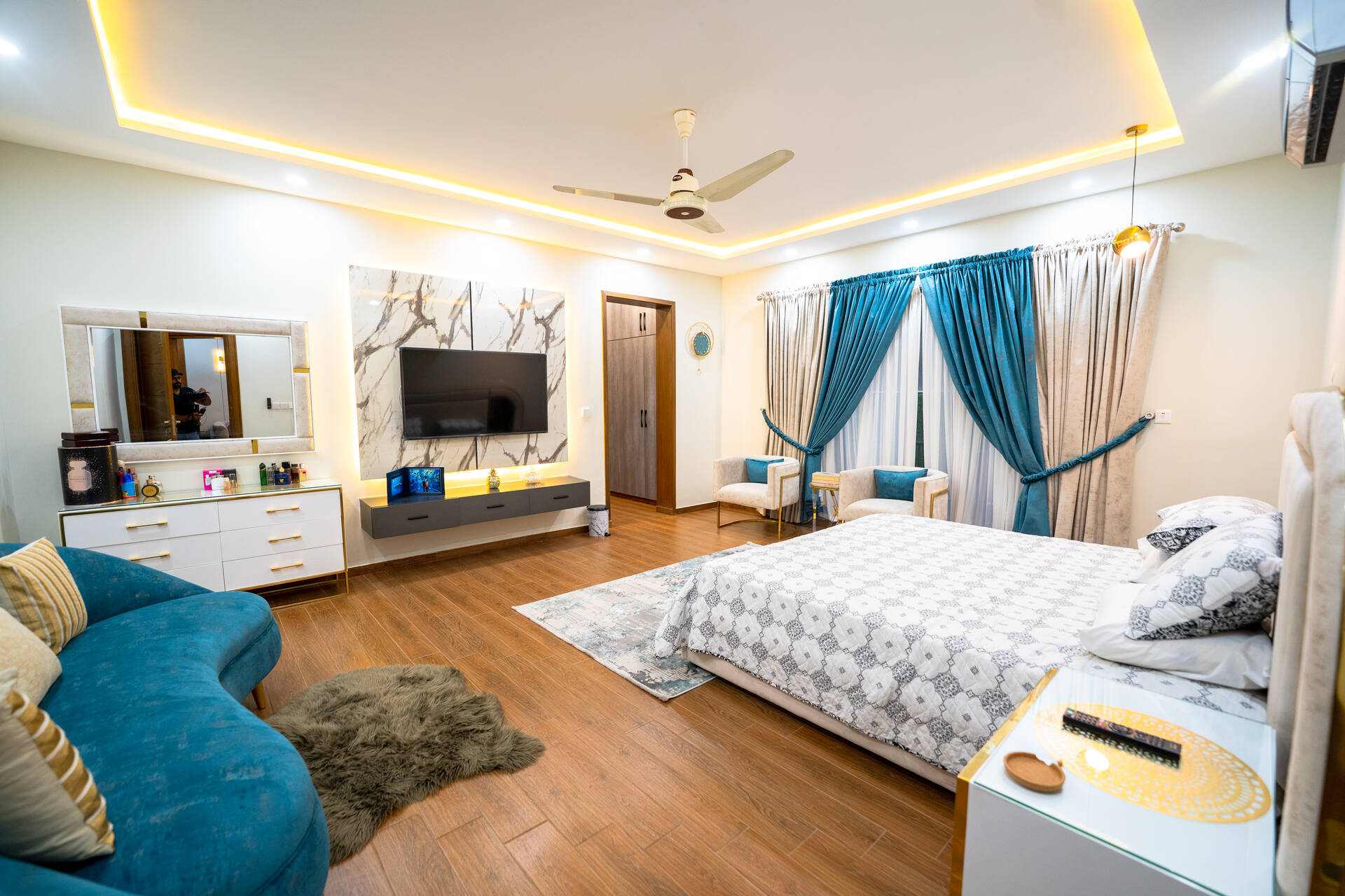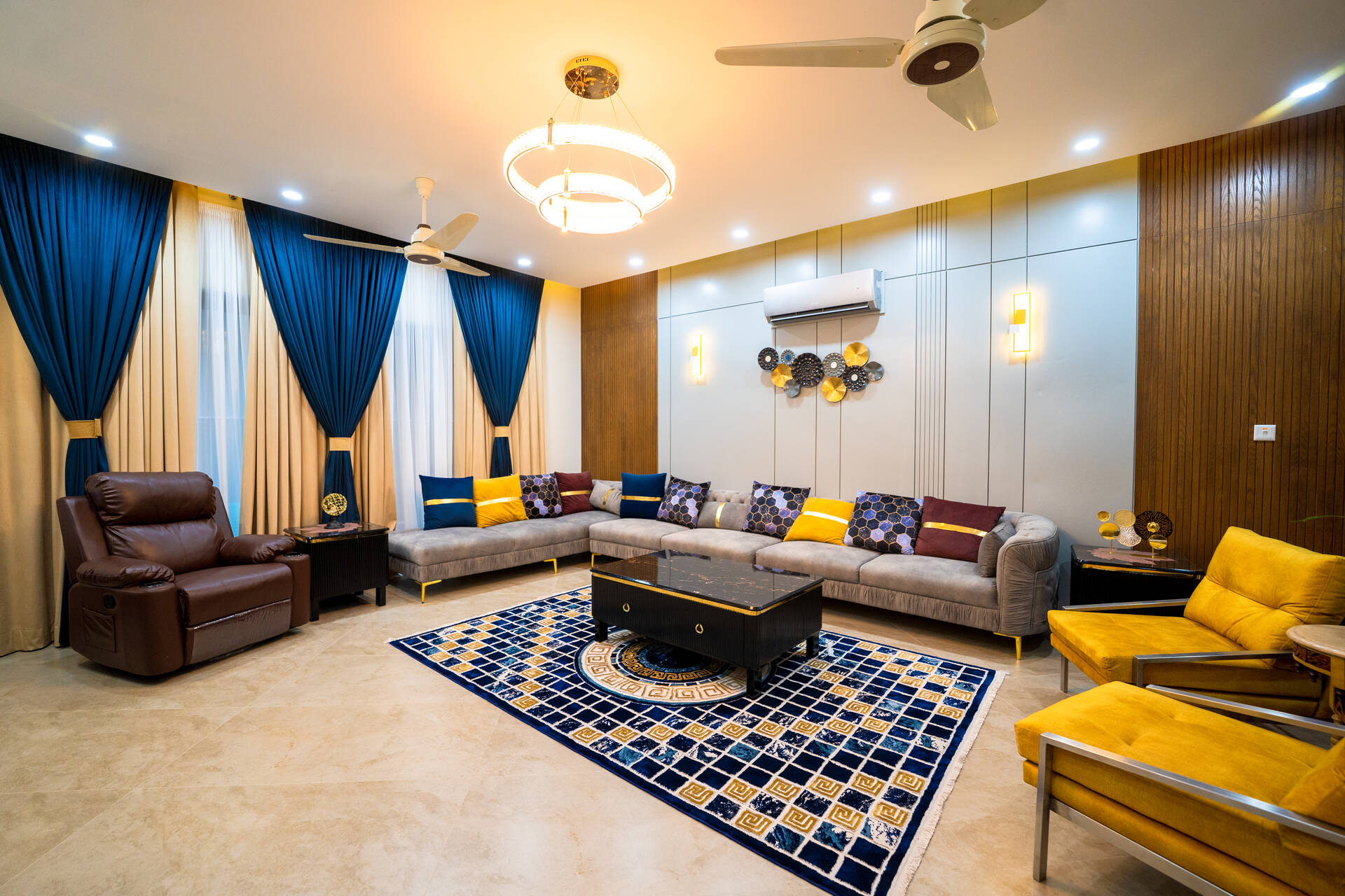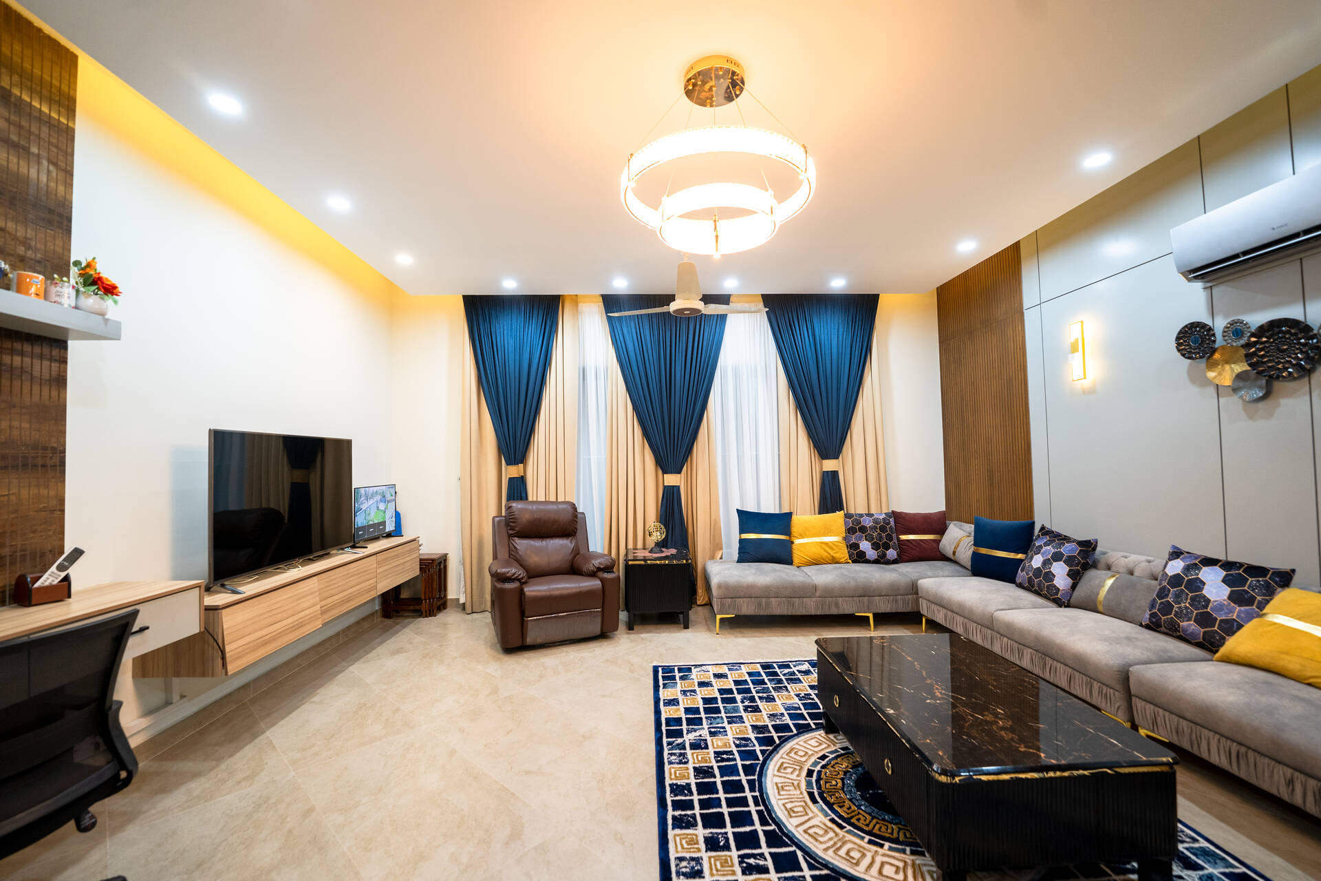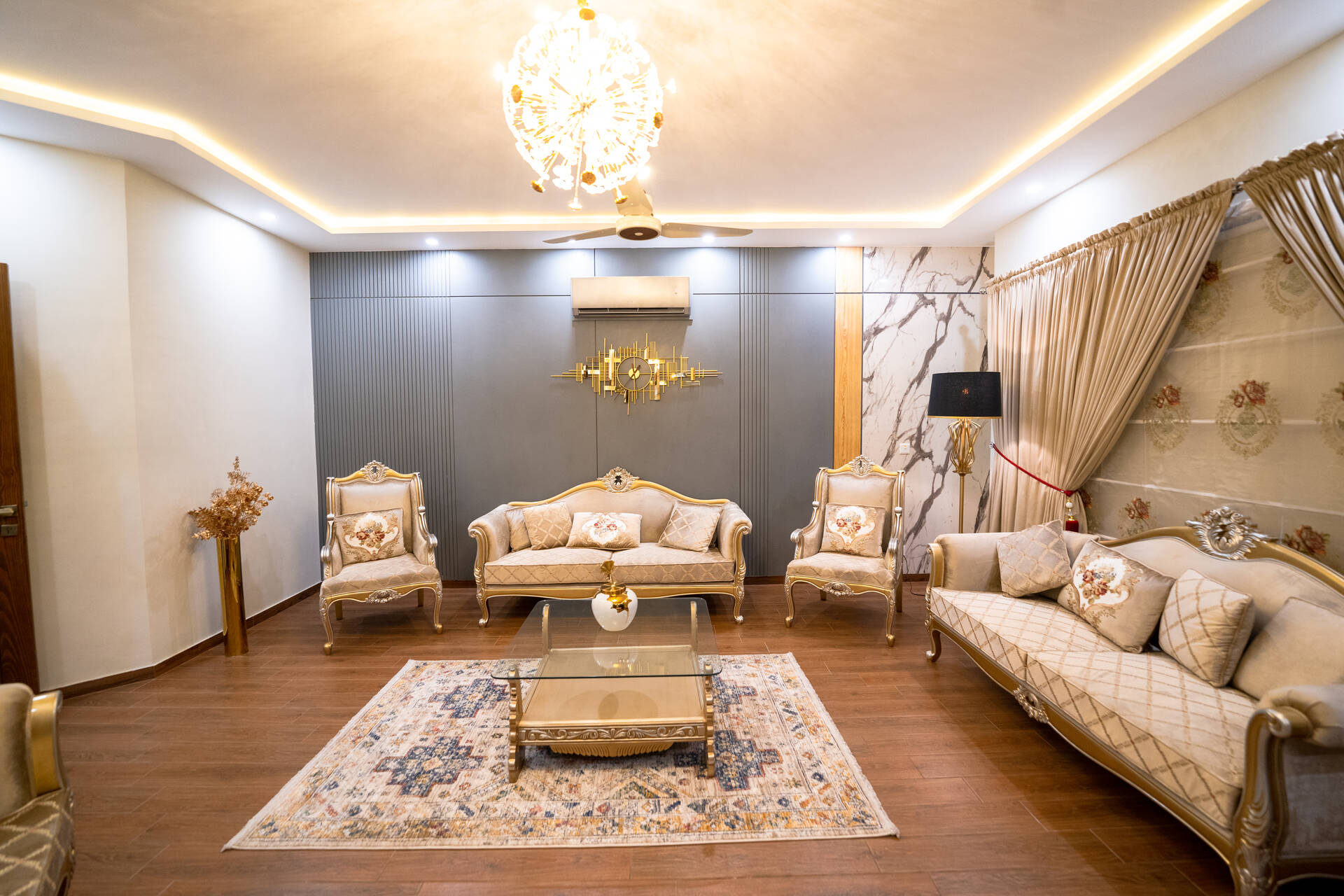 ARC 335 is a luxurious 1.5 Kanal residence designed and constructed by Blue Arc, offering 7500 sqft of premium living space. It includes 5 bedrooms, a lounge, dining area, partial basement, greasy kitchen, and a 2-car porch.